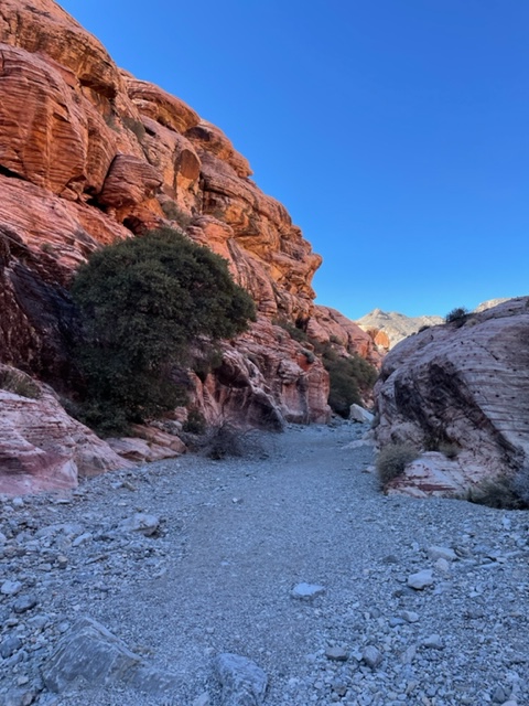 Calico Basin is adjacent to Red Rock Canyon National Recreation Area. It is free and no reservation is required, unlike Red Rock. While exploring the parking lot I found a nice 2-mile loop desert hike. There were other hikers and rock climbers. It was a great short hike. As I exited, I came across a second parking area full of cars with lots more trails. It seemed much more popular based on the traffic and the number of trailheads. I made a note to return the next week and check them out.