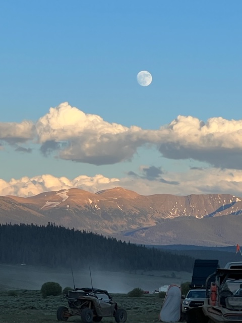 The weather was bipolar this year. At my daughter’s house in Colorado and anywhere we went, the weather held on to its insanity. We had two camping trips. The first trip was to Taylor Lake. This reservoir is in a valley at 9300 feet. It was a 4-hour drive to southern Colorado to meet friends. The camping is on an alluvial plain with snow-covered mountains all around. The days were long and fun-filled in the 70-degree range; at night the temperature dipped into the low 20s. I felt the chill. One morning, as I was warming in the first light, a black cloud came in with rocket speed and dumped a brief snow flurry on me. I was not ready and I had to sit in the car to get warm. However, the beauty of the “high country” area provides a “free pass” for any discomfort. I was invited by friends to go with them in their off-road vehicle “RZR” to Mirror Lake. This is a classically beautiful place. They fished, and I hiked. It is over 10,400 feet and is the gateway to the Continental Divide.